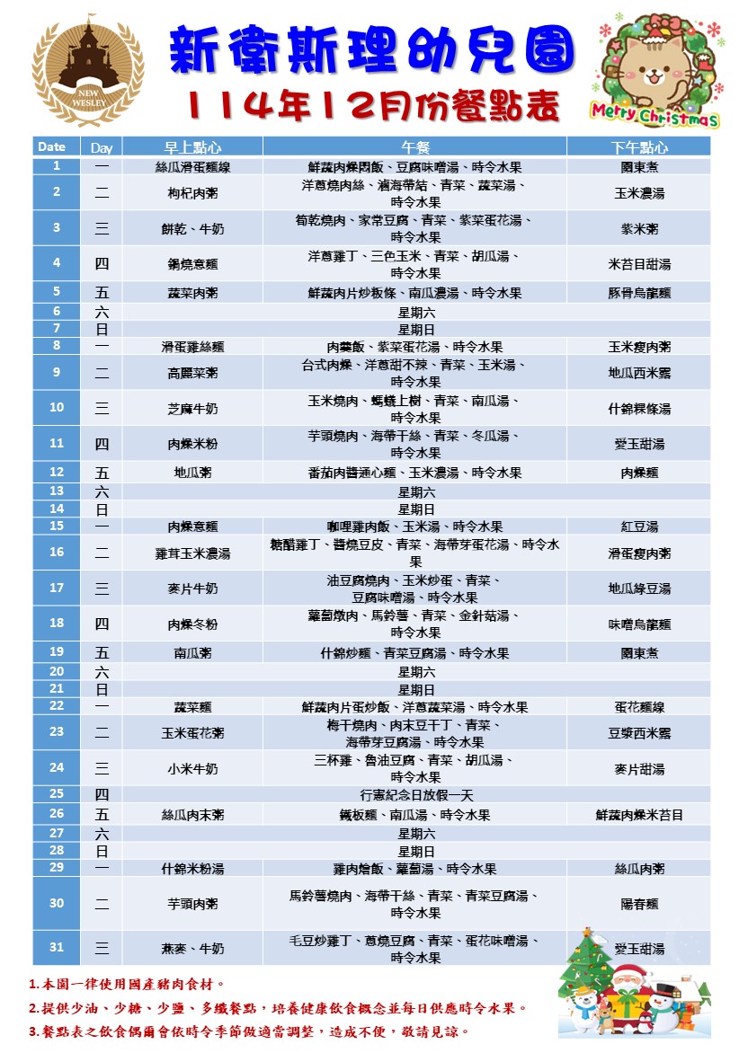本月餐點表下載