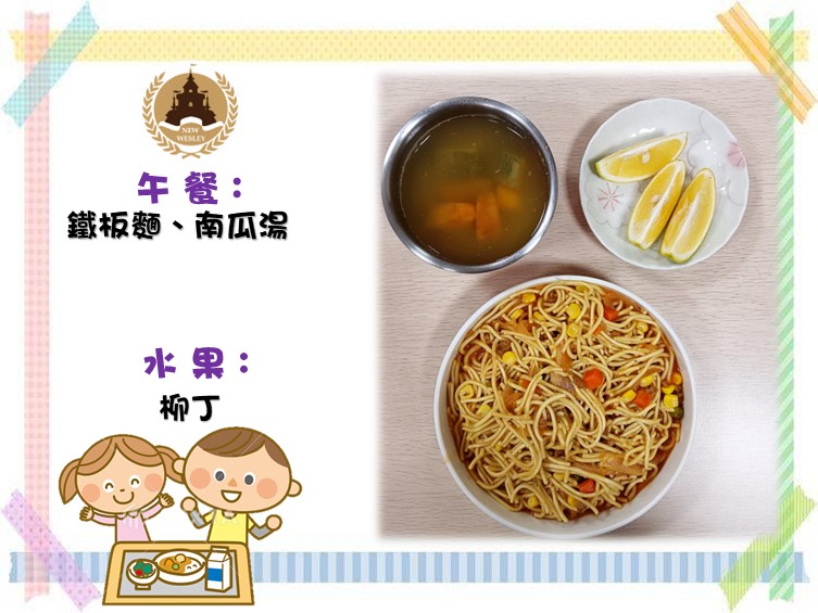 鐵板麵、南瓜湯、柳丁